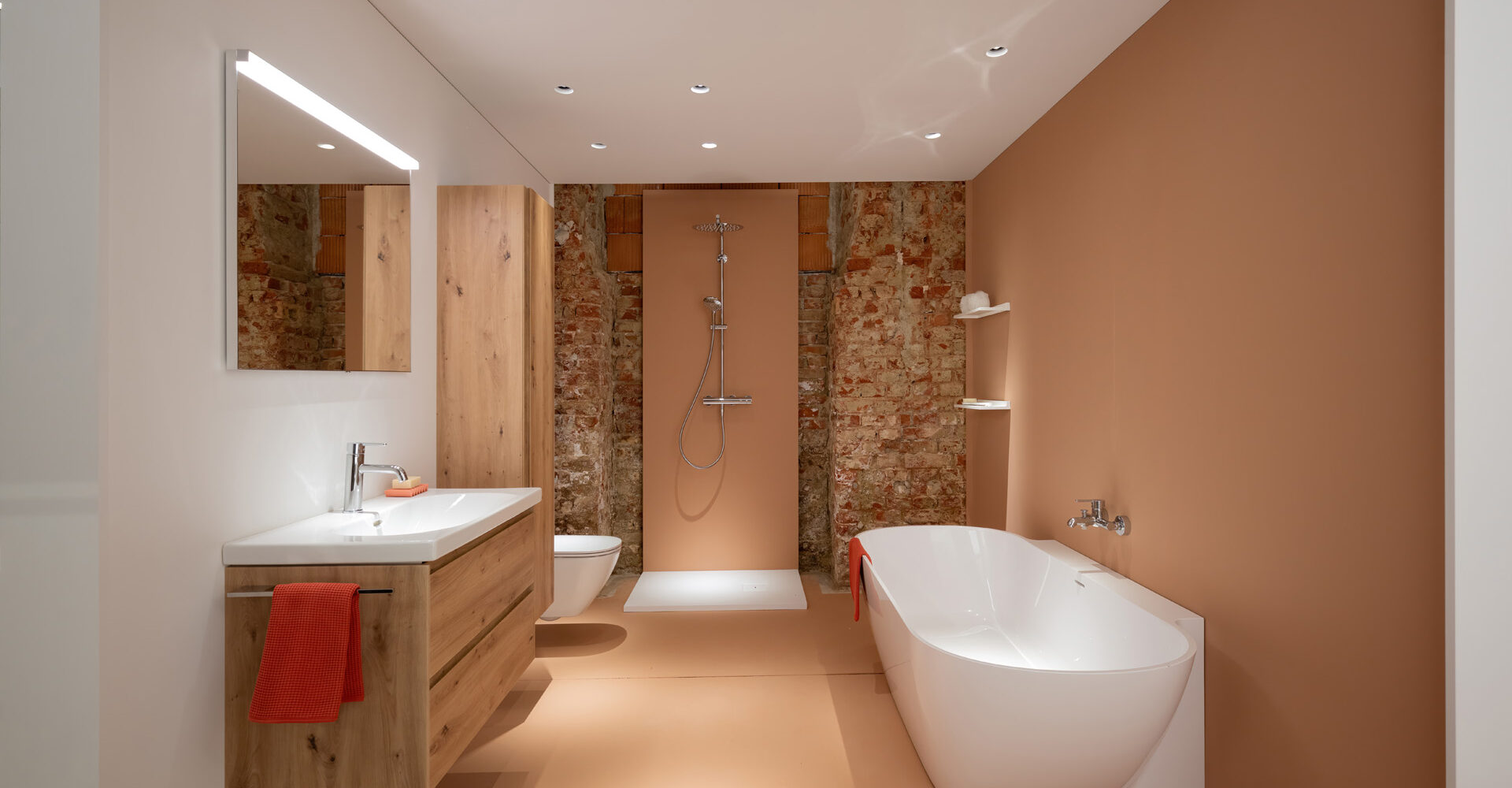 Aus der feinen Abstimmung von Badkeramiken, Badezimmermöbeln, Armaturen und Accessoires entwickeln wir in der persönlichen Beratung mit unseren Kund:innen ganzheitliche, individuelle Visionen.